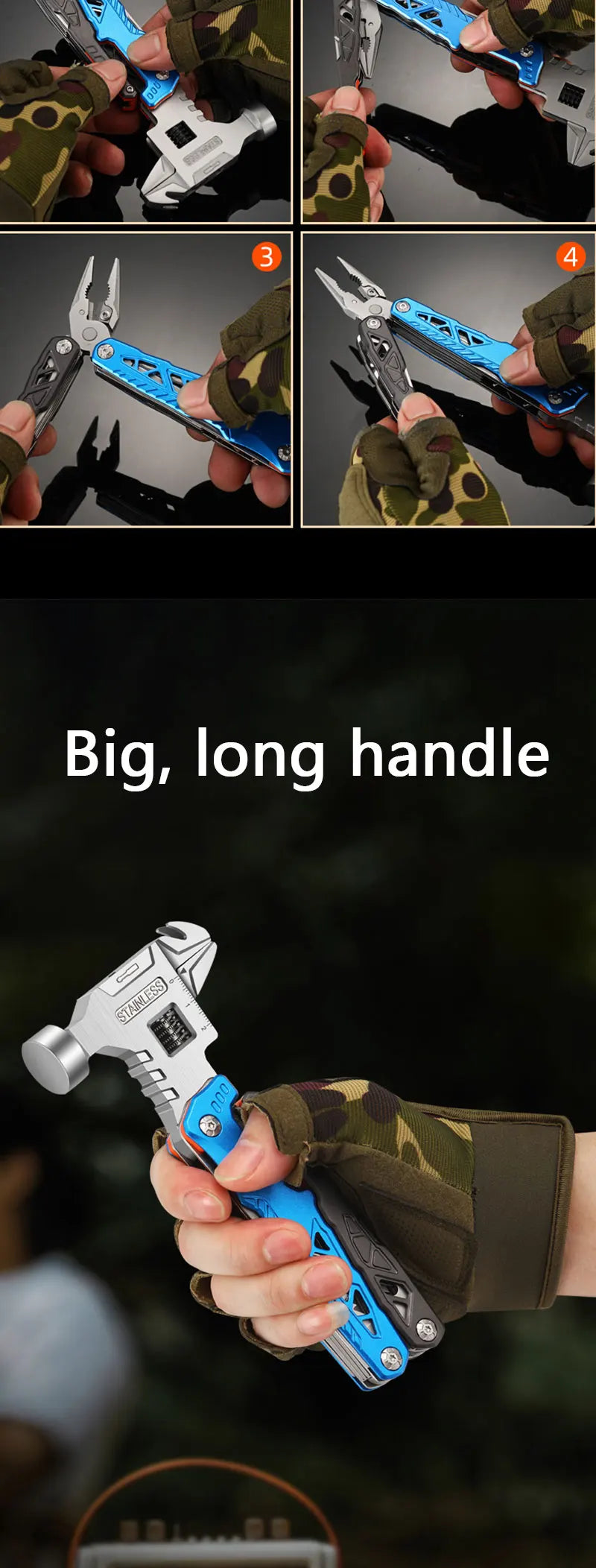 Hammer in tent stakes, grip with pliers, tighten bolts, or pull nails—all without swapping tools. This multitool is ready to handle tough jobs in tight spaces, making it a must-have for outdoor adventurers, DIYers, and emergency-prep pros.